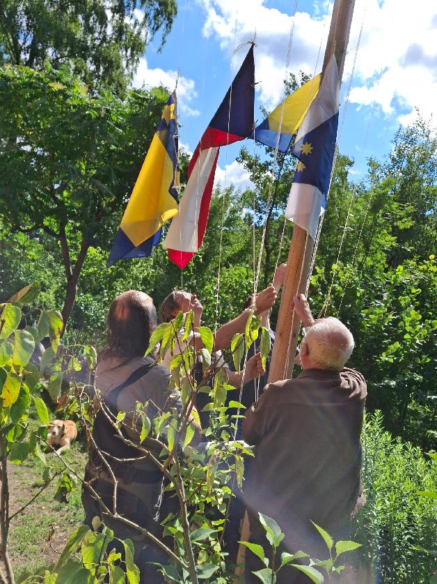 Náš letní tábor začal velmi příjemně, i když za vydatného deště, na hudebním festivalu Lázeňská struna v Konstantinových Lázních, kde jsme se skvěle bavili. Byla to vlastně taková duševní příprava na další část tábora, která byla spíše nestandardní. Byla totiž nastavena jako pracovní. To, že je možné udělat každý den pořádný kus práce a ještě si u toho nebo potom užít spoustu legrace a pohody, už všichni dávno víme. Letos jsme se o tom znovu přesvědčili. Výsledkem našeho pracovního nasazení a snažení je myslíme skvěle zrenovovaná lávka přes říčku Teplá k chatě a také téměř dokončené úložiště „Doupě“. Celou dobu nás na táboře bylo 10, někdo mohl přijet pracovat alespoň na několik dní, řada dalších kamarádů nás přijela podpořit alespoň krátkou návštěvou. Na konci tábora si také tři z nás složili skautský slib. Chvilky dojetí při skládání slibu vystřídalo veliké veselí při vodáckém křtu. Jako důkaz toho, že nám spolu bylo dobře, je to, že jsme už na konci tábora začali hovořit o tom, jak bychom si představovali ten v následujícím roce.